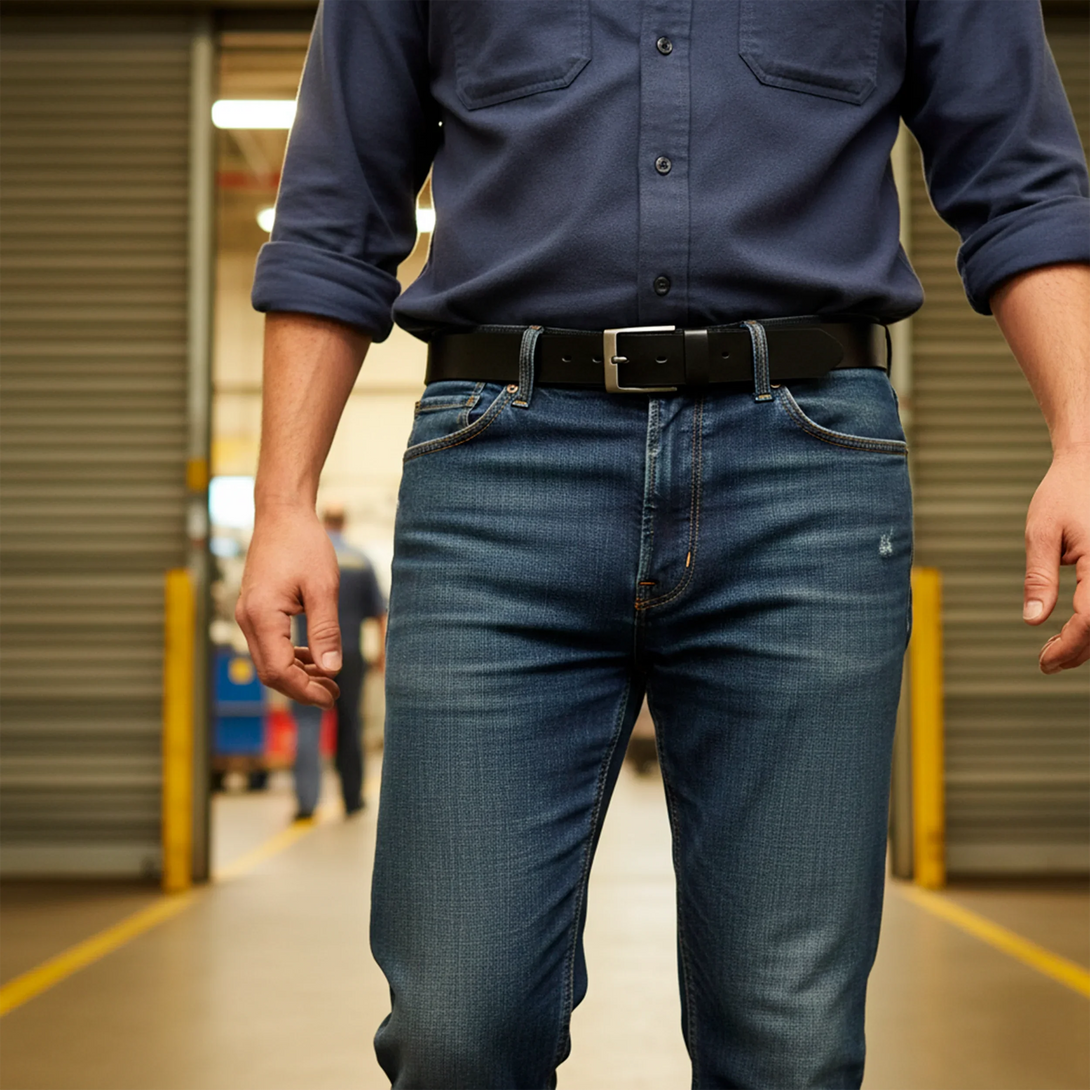 Handgemaakt van premium echt leer, combineert deze herenriem verfijnde stijl met dagelijkse duurzaamheid. Met een slanke gesp van zilverkleurig metaal en flexibele maatopties is hij ontworpen om perfect in elke garderobe te passen.